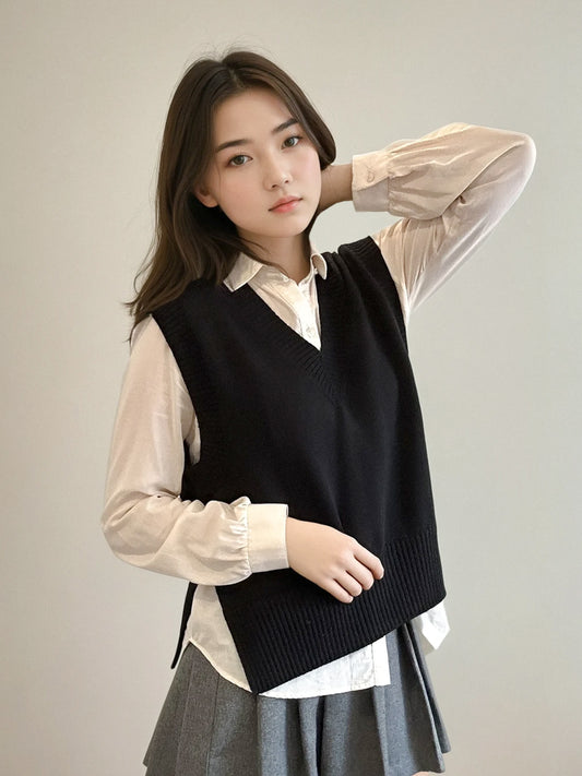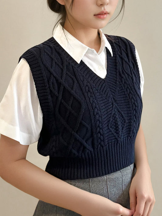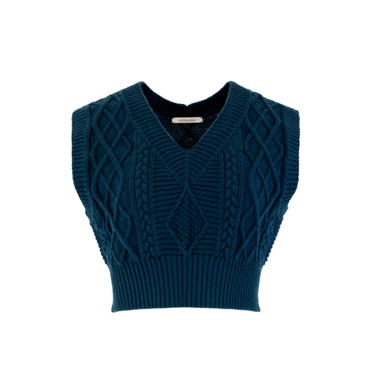 Nora Merino Wool Cropped Sweater Vest - Marine